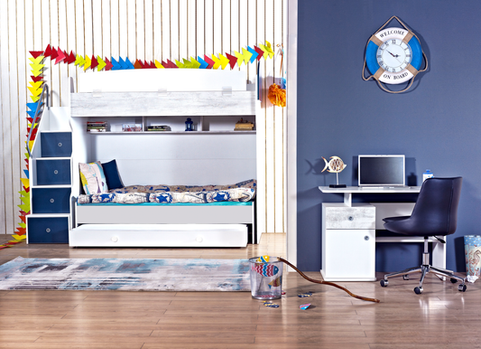 "Ontdek een wereld vol avontuur en fantasie met onze jongens kinderslaapkamers bij Markawonen. Onze collectie biedt een breed scala aan thematische ontwerpen die de verbeelding van jouw zoon prikkelen en zijn dromen tot leven brengen. Van stoere piratenschepen en raceauto's tot ruimteavonturen en jungle expedities, wij hebben alles om de perfecte slaapkamer voor elke jonge ontdekkingsreiziger te creëren. Onze hoogwaardige materialen en doordachte ontwerpen zorgen niet alleen voor een magische sfeer, maar ook voor comfort en functionaliteit. Laat jouw zoon zijn eigen avonturen beleven in een slaapkamer die speciaal voor hem is ontworpen, alleen bij Markawonen."