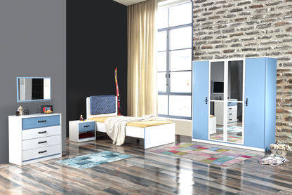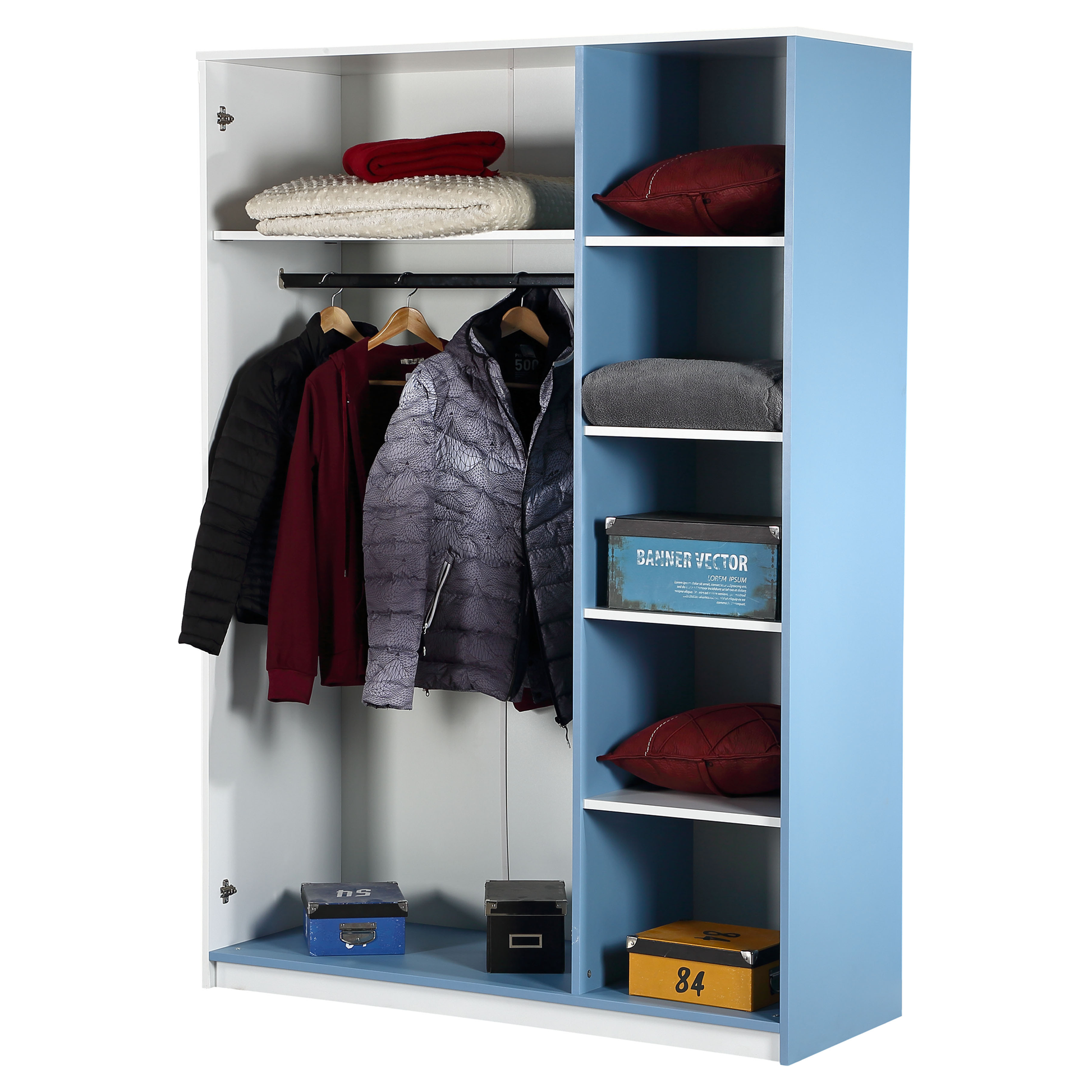 Dit unieke, blauw/hout geïnspireerde kledingkast is afkomstig uit de 'Class' collectie en heeft een warme uitstraling. De 3 openslaande deuren geven dit kledingkast veel opbergmogelijkheden. Het kledingkast is onderdeel van de kinderslaapkamer set 'Class'.