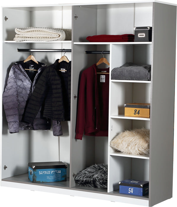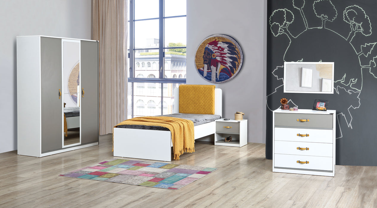 Dit unieke, grijs/hout geïnspireerde kledingkast is afkomstig uit de 'Class' collectie en heeft een warme uitstraling. De 4 openslaande deuren geven dit kledingkast veel opbergmogelijkheden. Het kledingkast is onderdeel van de kinderslaapkamer set 'Class'.