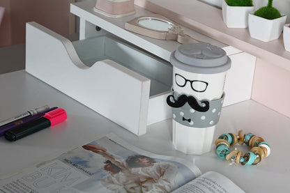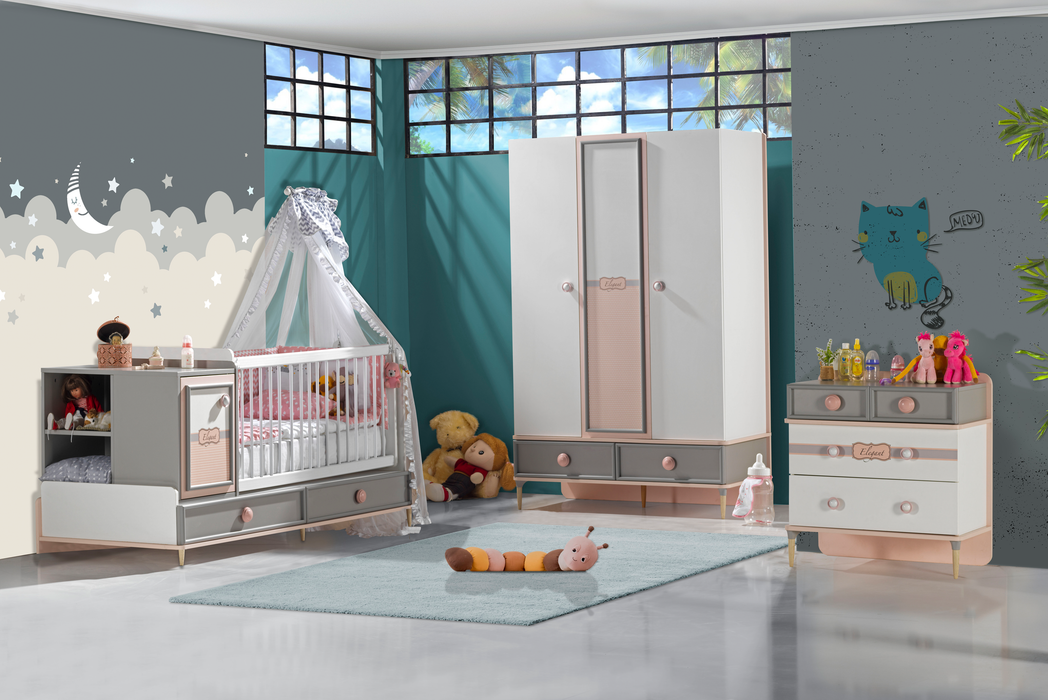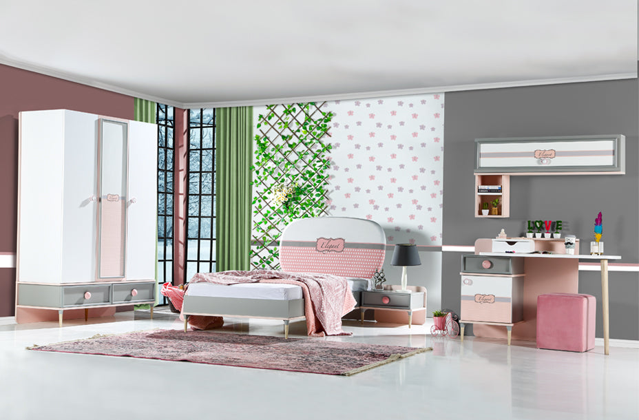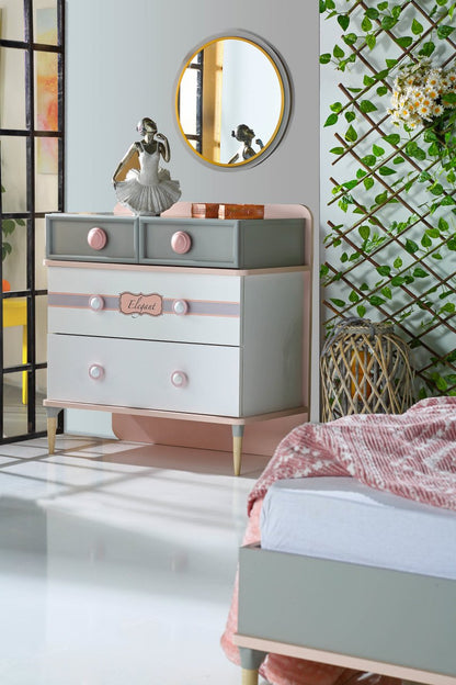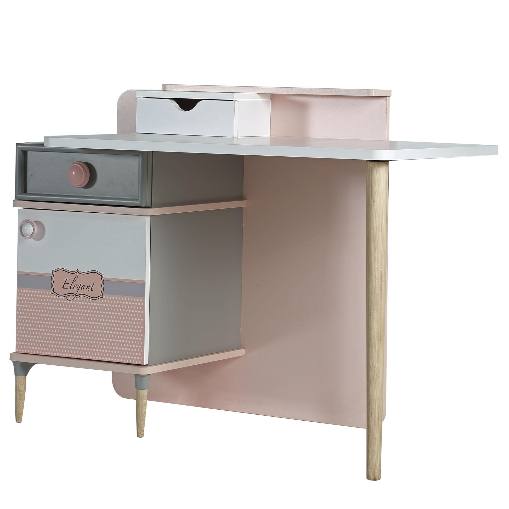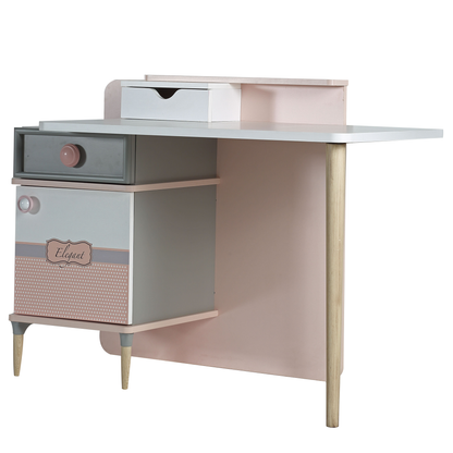 Dit unieke, grijs/hout klassiek-geïnspireerde bureau is afkomstig uit de 'Elegant' collectie en heeft een warme uitstraling. Met een openslaande deur en meerdere lades bied dit bureau genoeg opbergmogelijkheden. Het bureau is onderdeel van de kinderslaapkamer set 'Elegant'.