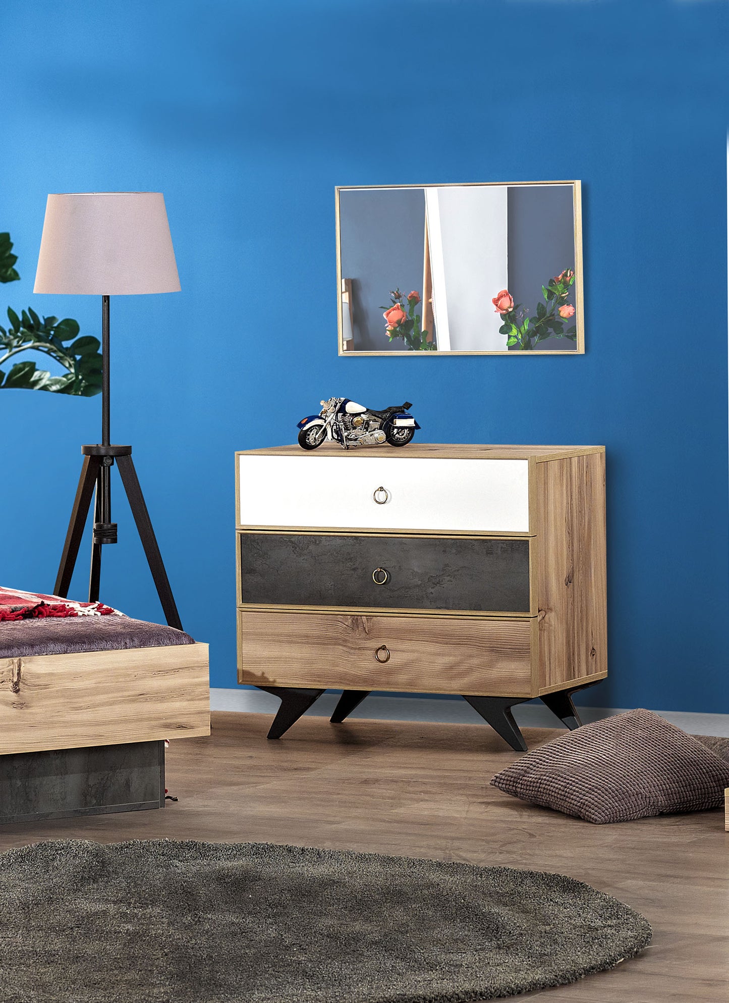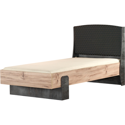Dit unieke, brons/hout class-geïnspireerde eenpersoonsbed is afkomstig uit de 'Fenomeen' collectie en heeft een stoere uitstraling. Twee afmeting mogelijkheden zijn er met dit bed 100x200 cm of 120x200 cm breed. Modern design ontworpen in 2020. De eenpersoonsbed is onderdeel van de kinderslaapkamer set 'Fenomeen'.