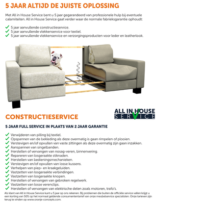 De hoekbank wordt in losse elementen geleverd. Dit model bestaat uit 3 delen: arm/ 2-zits + hoekelement + 2-zits /arm. Inclusief drie losse kussens zoals afgebeeld. Op elk element zitten speciale bevestigingshaken zodat uw bank gemakkelijk aan elkaar geklikt kan worden. Links en rechts is allebei mogelijk.