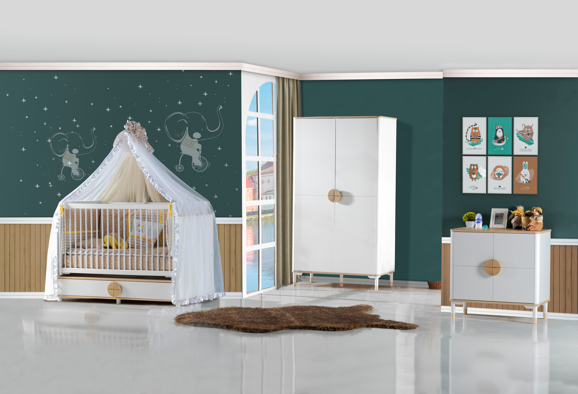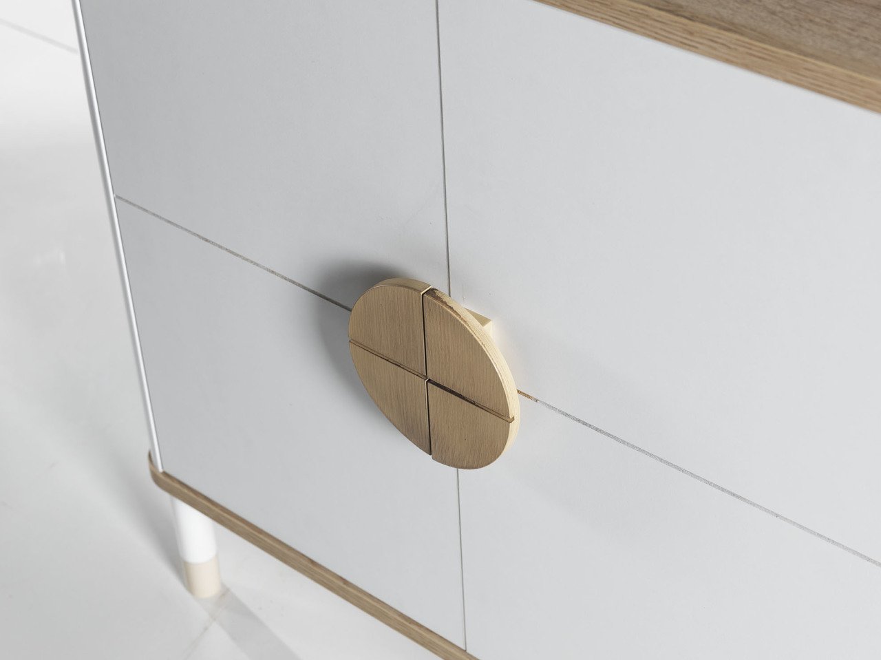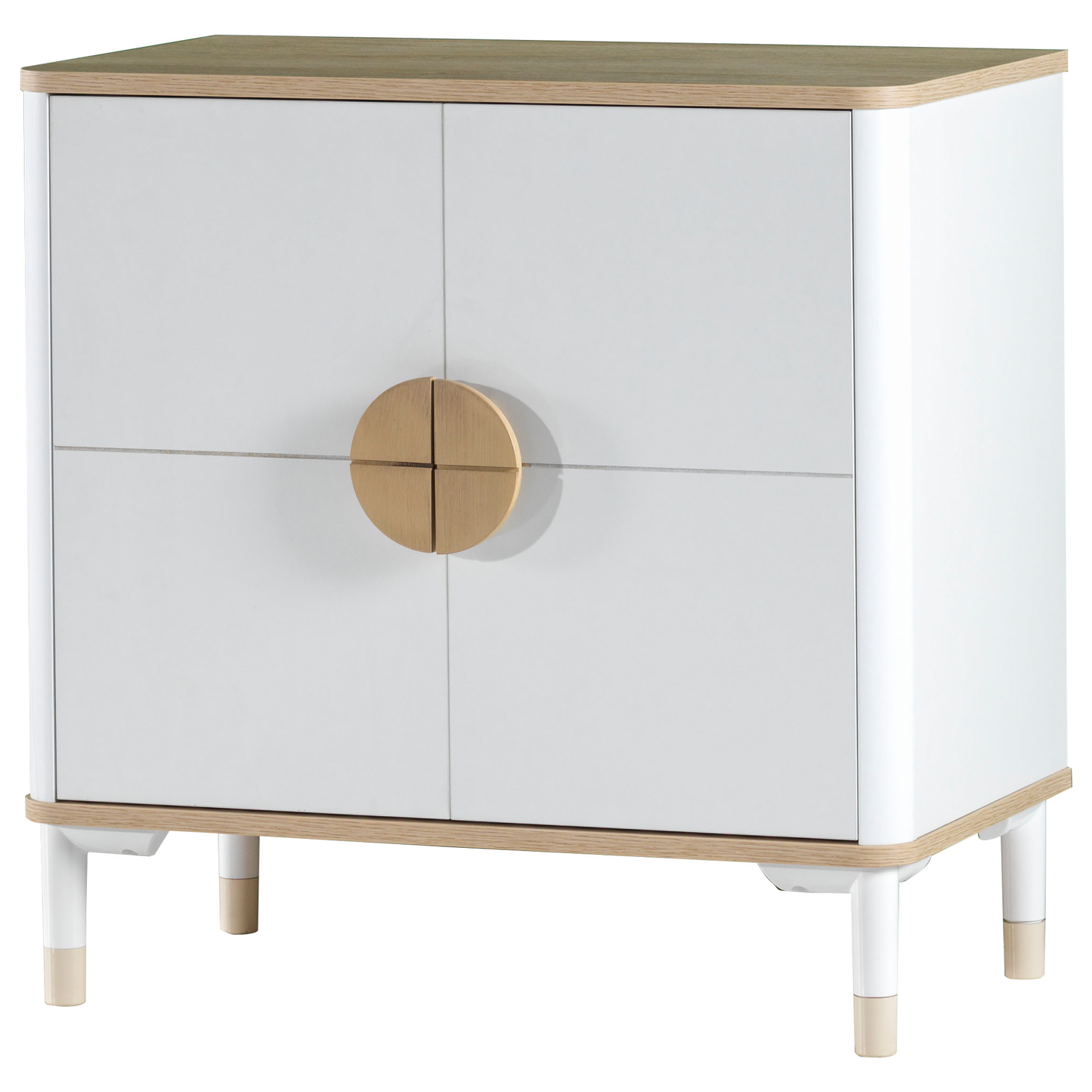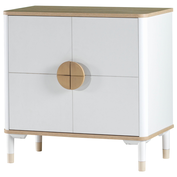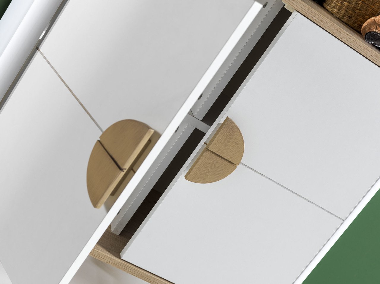 Dit unieke, wit/hout modern-geïnspireerde commode is afkomstig uit de 'Loft' collectie en heeft een warme uitstraling. De 2 draaideuren geven het genoeg opbergmogelijkheden. De commode is onderdeel van de kinderslaapkamer set 'Loft'.
