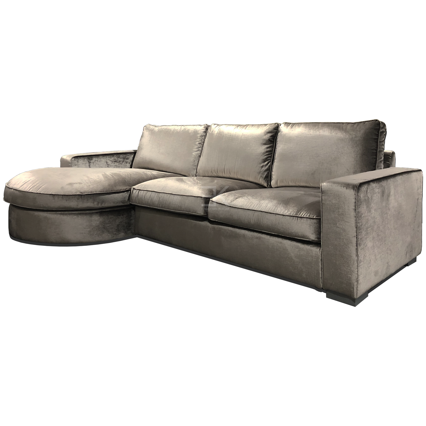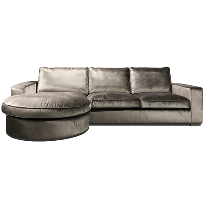 Loungebank Rio is een ruime sierlijke bank met een modern design. Mede door de rondingen van de lounge krijgt de bank een unieke uitstraling. Alle rug-kussens en losse kussens zijn tevens voorzien van ritsen. De bekleding bestaat uit Kemer Velvet 107 in brons kleur.