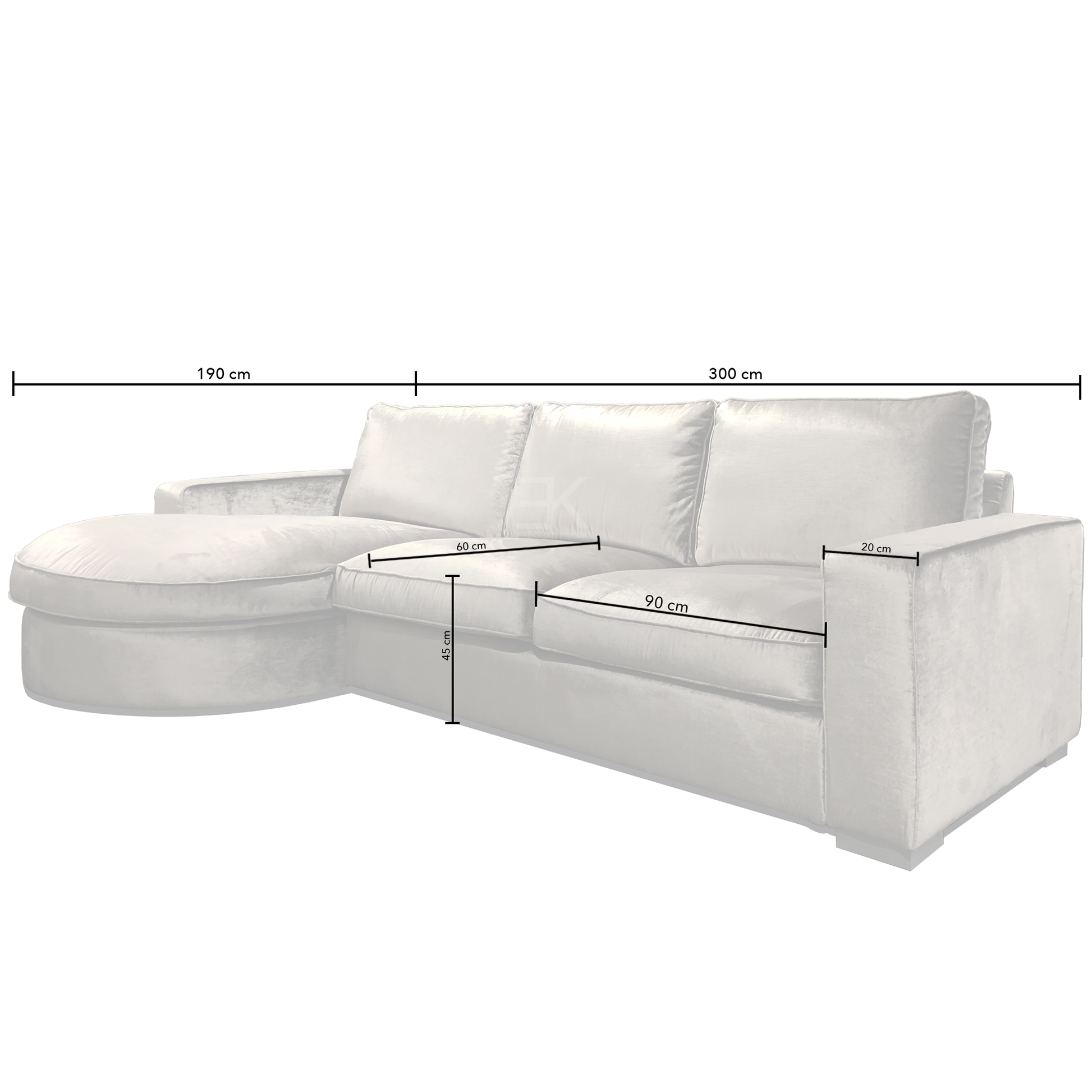 De hoekbank wordt in losse elementen geleverd. Dit model bestaat uit 2 delen: arm/ lounge + 2-zits /arm. Op elk element zitten speciale bevestigingshaken zodat uw bank gemakkelijk aan elkaar geklikt kan worden. Links en rechts is allebei mogelijk.