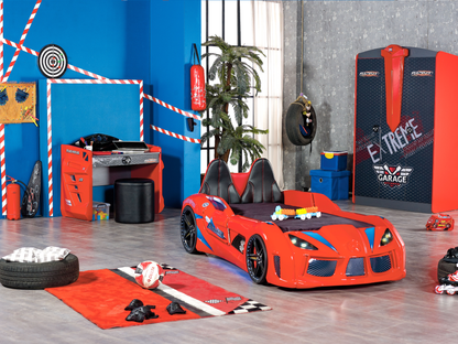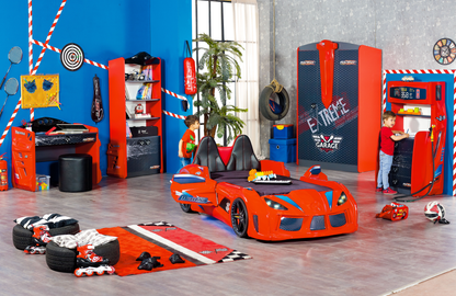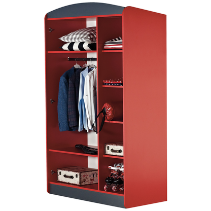 Dit unieke, Formule 1 geïnspireerde kledingkast is afkomstig uit de 'Racing' collectie en heeft een stoere uitstraling. Door gebruik van meerdere planken zijn er genoeg opbergmogelijkheden. De kledingkast is onderdeel van de kinderslaapkamer set 'Racing'.